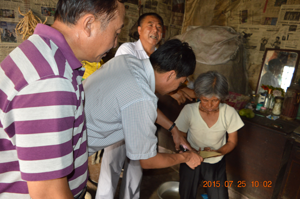 和尚溝村現(xiàn)有農(nóng)戶350戶,人口1307人,主要經(jīng)濟(jì)來(lái)源以果樹(shù)、蔬菜大棚為主。此次下鄉(xiāng)幫扶活動(dòng)中,一支部的黨員們首先與村干部進(jìn)行了座談,了解村里的新農(nóng)村建設(shè)情況。接著,走訪了村里的兩戶困難戶。一戶是低保戶高彥峰家,老兩口年邁體弱,兒子患糖尿病晚期,足部潰爛,與父母共同生活,無(wú)法下地干活,無(wú)力承擔(dān)大額醫(yī)藥費(fèi);另一戶是李素香老人,64歲,孤身一人生活,骨瘦如柴,身高不足1.5米,干不動(dòng)農(nóng)活。黨員們通過(guò)與這些困難群眾拉家常,了解他們的生活情況,鼓勵(lì)他們戰(zhàn)勝疾病與貧困,感受社會(huì)的關(guān)愛(ài)和溫暖。在給這些困難家庭送去關(guān)心的同時(shí),為每戶送去1000元的慰問(wèn)金及米、面、油等生活用品。