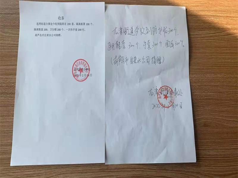 肩上有擔(dān)當(dāng)。郭明義愛心團隊葫蘆島市自來水公司分隊和葫蘆島市城鎮(zhèn)供水協(xié)會主動扛起社會責(zé)任,向綏中縣、龍港區(qū)、連山區(qū)、興城市、南票區(qū)、楊家杖子經(jīng)濟開發(fā)區(qū)和葫蘆島市防疫指揮部捐贈虹螺山泉礦泉水總計一萬箱,助力疫情防控工作,奉獻愛心。葫水科技有限公司代表葫蘆島市自來水公司向龍港區(qū)龍灣街道辦事處、連灣街道辦事處捐贈防護服500套、隔離面罩400個、醫(yī)用鞋套500副、一次性手套500副及衛(wèi)生帽200個。公司副經(jīng)理楊麗雪個人出資一萬余元為茨山社區(qū)、新風(fēng)社區(qū)、首創(chuàng)龍灣、麗水陽光物業(yè)購置方便面30箱、面包10箱、香腸10箱、礦泉水100件、醫(yī)用口罩5000余個、防護服30套、消毒液6桶。公司設(shè)計院向青青家園社區(qū)捐贈N95口罩500只;綜合部員工闞丹向企業(yè)家協(xié)會捐贈電熱水壺5個、暖水袋20個、加熱鞋墊20副;黨委工作部員工王莉莉向騰飛社區(qū)捐贈方便面2箱、面包1箱、香腸1箱、鹽焗雞蛋1箱。一件件防疫物資承載著擔(dān)當(dāng)與愛心,彰顯著眾志成城、抗擊疫情的決心與信心,凝聚起共同戰(zhàn)“疫”的強大正能量。