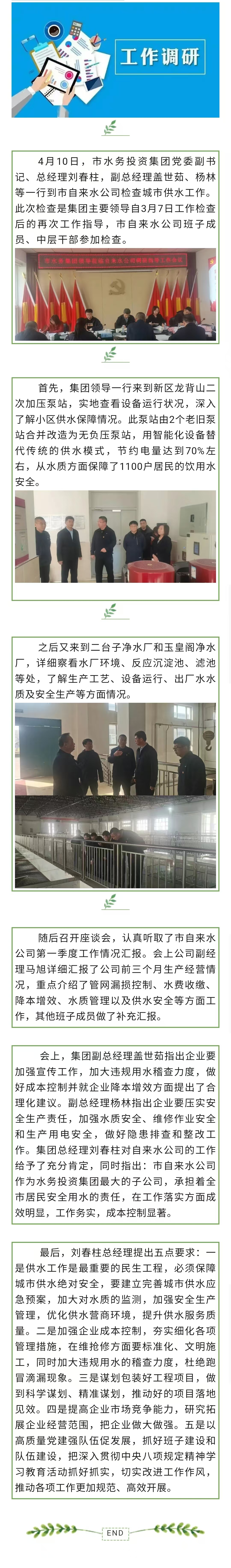 市水務(wù)投資集團(tuán)主要領(lǐng)導(dǎo)到市自來水公司檢查城市供水工作