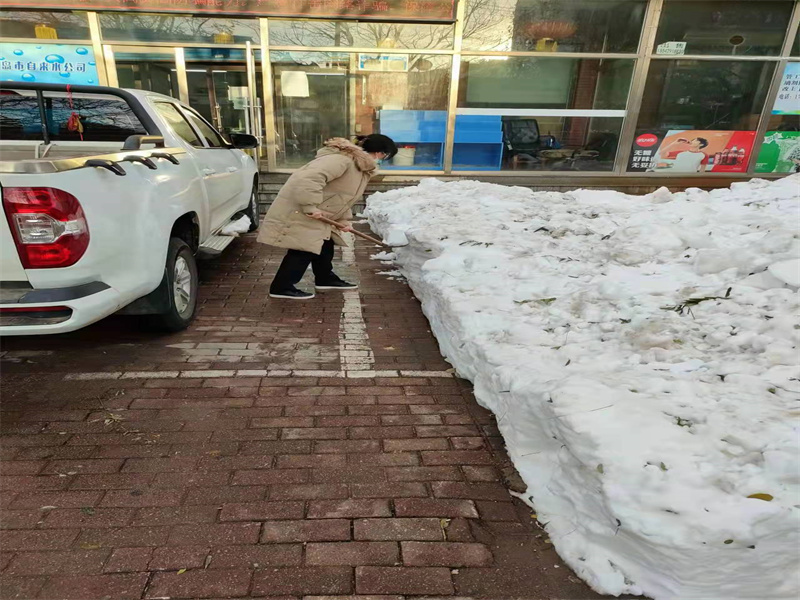 早晨寒冷的飛雪還沒有停,道路不通、公交停運(yùn),許多同志步行很長時(shí)間來到工作崗位,第一件事就是清除公司院內(nèi)外、水廠周圍、營業(yè)大廳門前等道路積雪。大家不顧天氣寒冷,掃積雪、鏟冰層、清雜物,干得熱火朝天。黨員干部率先垂范,以實(shí)際行動(dòng)踐行“我為群眾辦實(shí)事”的初心使命,展示出黨員干部團(tuán)結(jié)協(xié)作的良好精神風(fēng)貌。風(fēng)雪雖大,卻敵不過眾志成城。公司干部職工齊心協(xié)力,經(jīng)過幾小時(shí)的共同奮戰(zhàn),及時(shí)保證了公司院內(nèi)外、各廠區(qū)、營業(yè)大廳道路的安全暢通,營造了和諧、友愛的社會(huì)環(huán)境,展現(xiàn)了員工良好的集體責(zé)任感和團(tuán)隊(duì)協(xié)作精神。