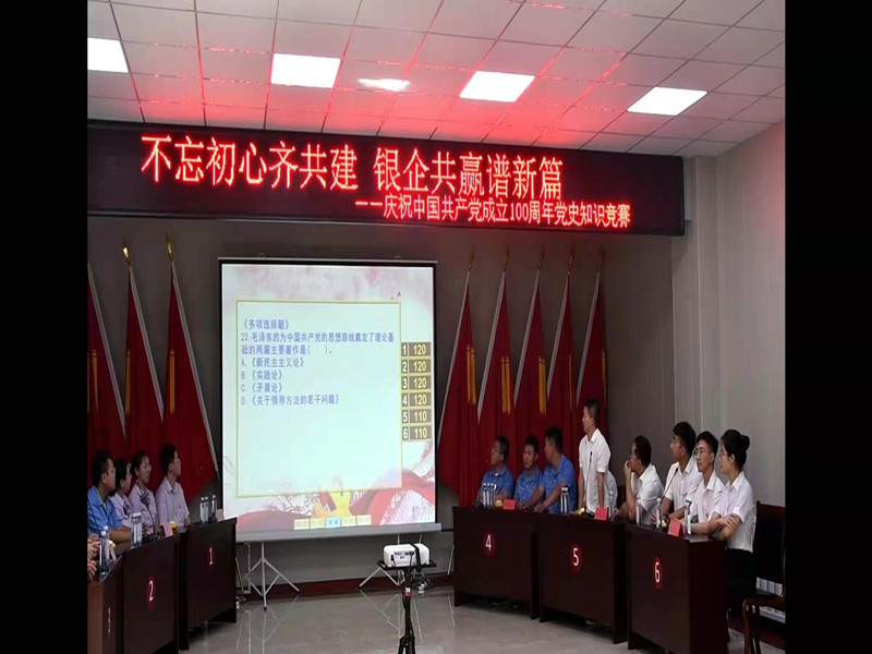 百年征程波瀾壯闊,百年初心歷久彌堅。為深入推進黨史學習教育走心走深走實,以實際行動踐行初心使命,營造學黨史、知黨情、跟黨走的濃厚氛圍。7月26日,葫蘆島市自來水公司攜手中國農業(yè)銀行、中國銀行、中機青山公司、平山公司、烏金塘水庫共同舉辦:“不忘初心齊共建 銀企共贏譜新篇”慶祝中國共產黨成立100周年黨史知識競賽活動,旨在通過學習競賽形式普及黨史知識,更好的促進銀行與供水企業(yè)之間的交流與合作,為中國共產黨百年華誕獻禮。市國資委副主任、黨委委員單亞光,黨辦主任李海峰應邀出席會議,各參賽單位主要領導參加會議。