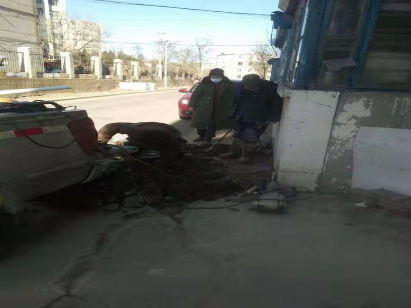 農(nóng)歷臘月二十九中午,營業(yè)二分公司接到報修工單——“富達園小區(qū)管線漏水”,維修班全體人員放下還沒有吃完的午飯,立刻趕赴現(xiàn)場。由于管線深、土層漏水點不是管線損壞位置,沿著管線追了五米才找到漏點位置,所有人員一鼓作氣完成了搶修任務(wù),連續(xù)工作長達11個小時。