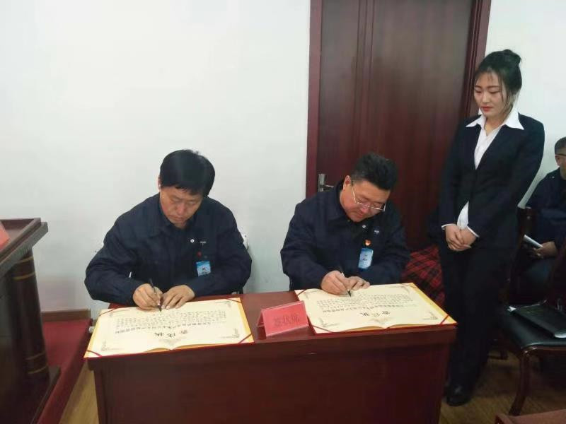 會(huì)上,公司經(jīng)理李文生與各分管經(jīng)理及部門負(fù)責(zé)人分別簽訂2019年度經(jīng)營(yíng)指標(biāo)責(zé)任狀。