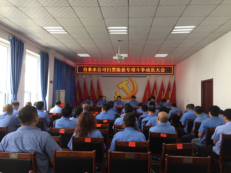 會(huì)上,公司黨委書記張旭濱傳達(dá)了最高人民法院、最高人民檢察院、公安部、司法部《關(guān)于依法嚴(yán)厲打擊黑惡勢力違法犯罪的通告》以及省市掃黑除惡專項(xiàng)斗爭指示精神,傳達(dá)了《葫蘆島市住房和城鄉(xiāng)建設(shè)委員會(huì)掃黑除惡專項(xiàng)斗爭工作實(shí)施方案》及住建委掃黑除惡十類專項(xiàng)排查內(nèi)容;常務(wù)副經(jīng)理徐學(xué)良宣讀《葫蘆島市自來水公司掃黑除惡專項(xiàng)斗爭實(shí)施方案》。