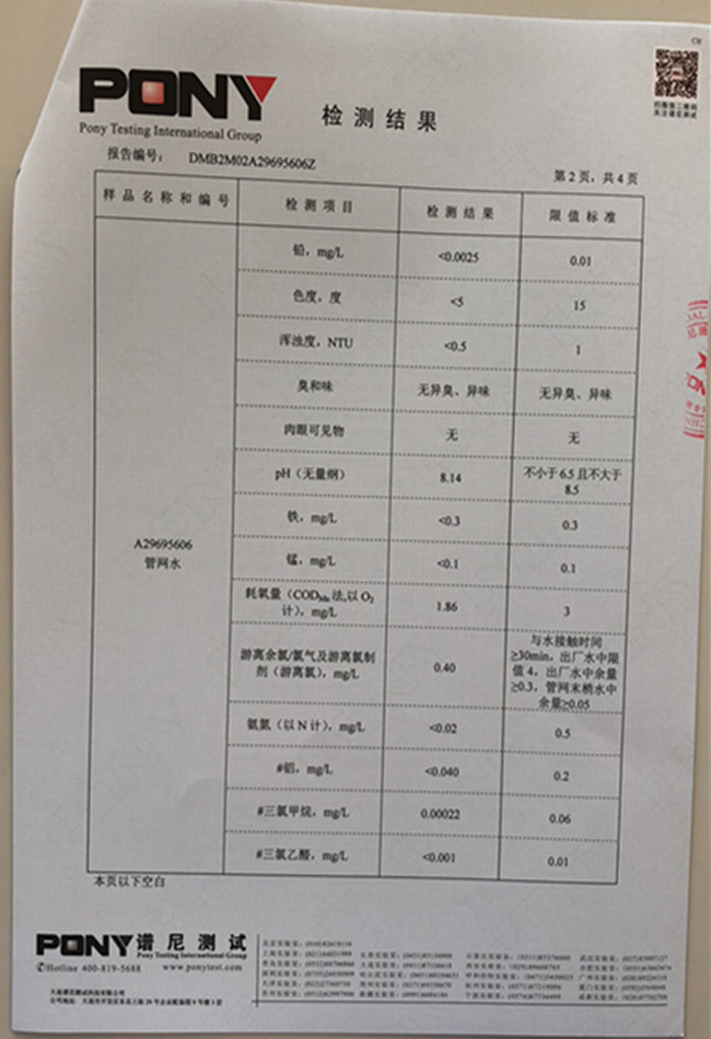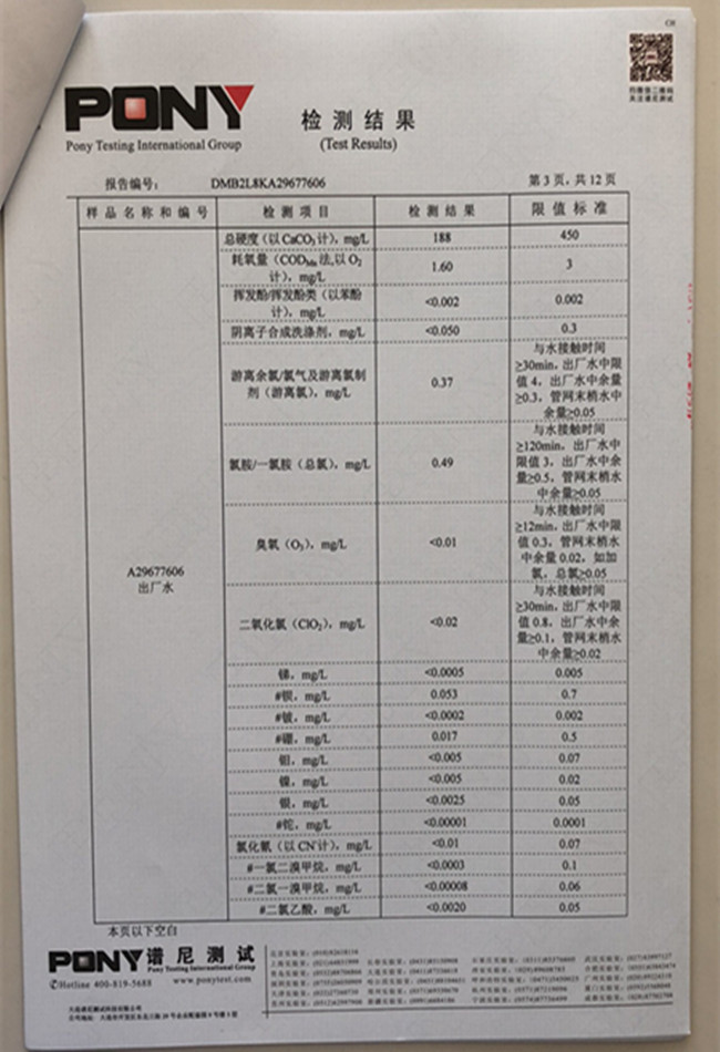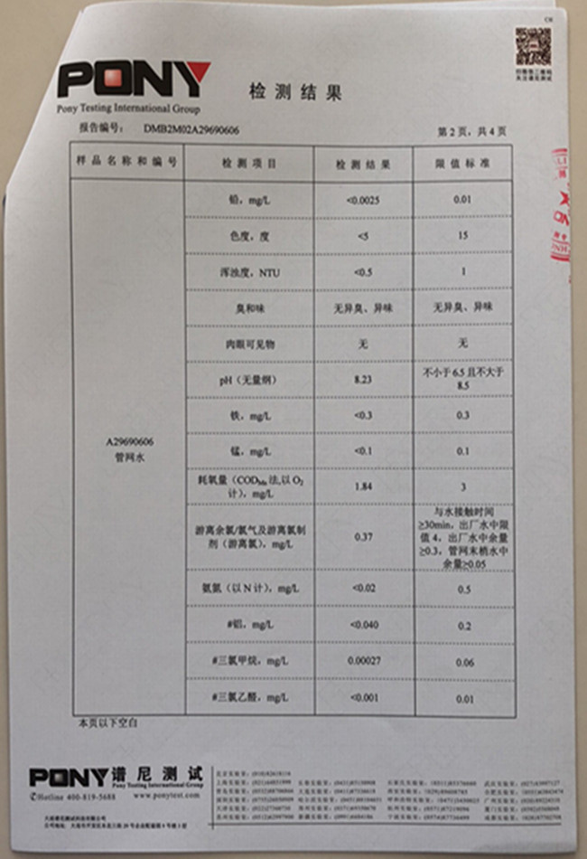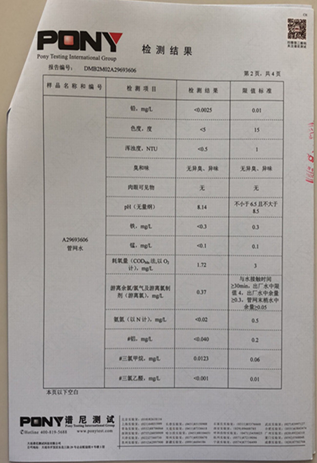 老合臺(tái)凈水廠檢測(cè)報(bào)告: