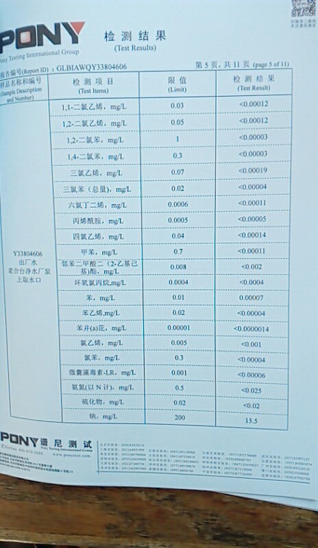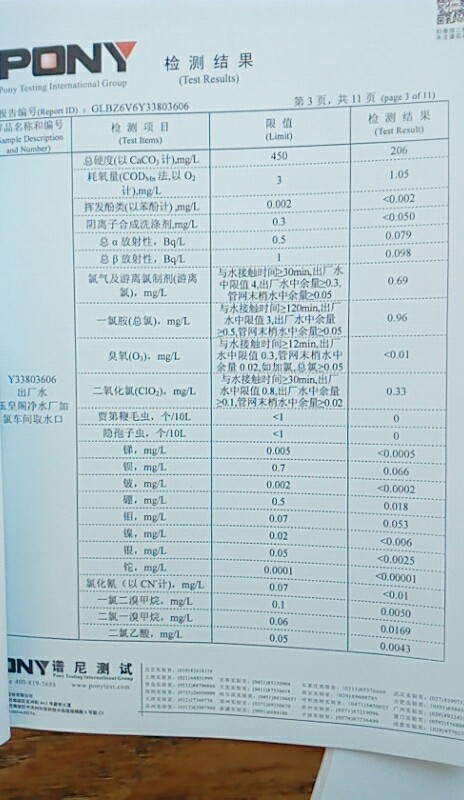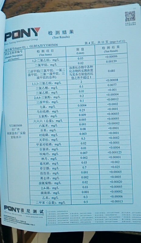 水質(zhì)報告