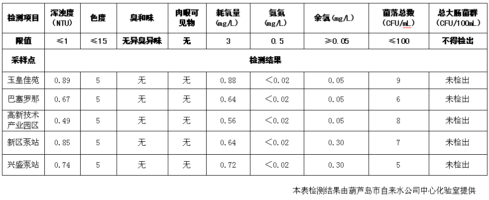 2017年1月11日葫蘆島市城市供水管網(wǎng)水質(zhì)信息